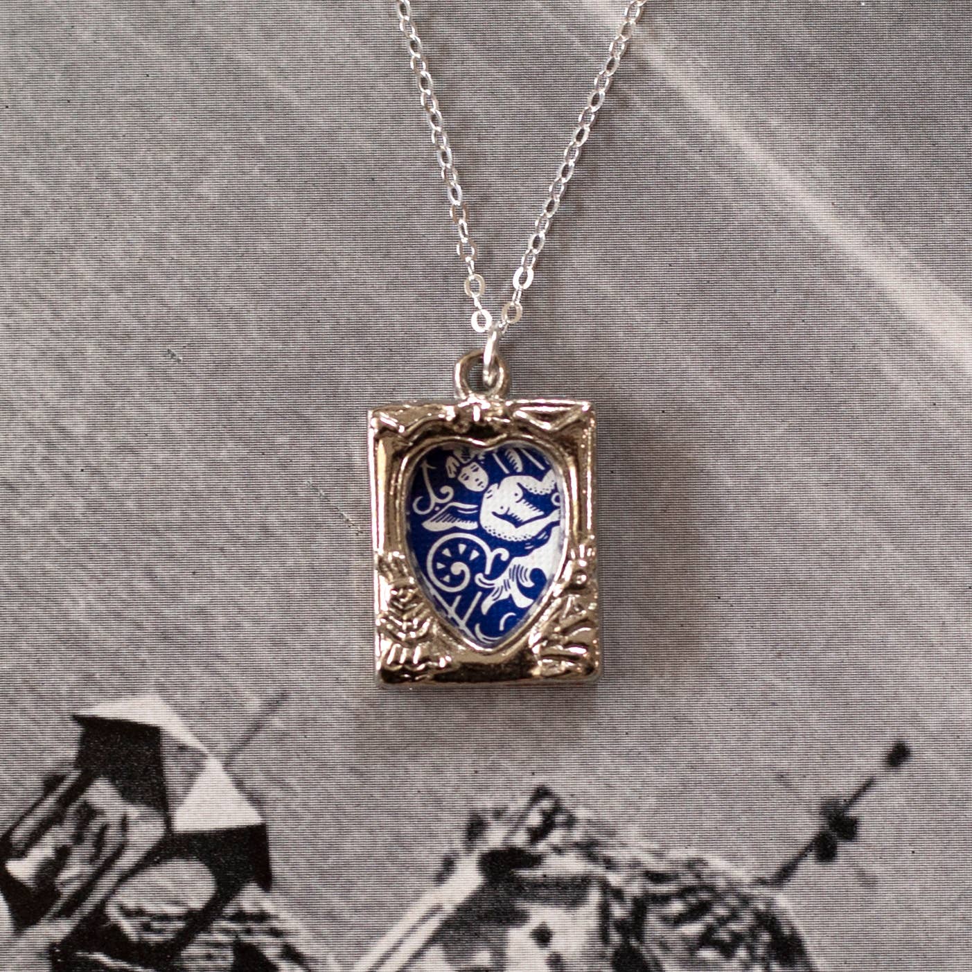 Each pendant arrives with a unique upcycled playing card snippet inside—no two are alike! Want to add your own image? Simply remove the jump ring to swap it out. Suspended on an 18" hypoallergenic, 100% recycled sterling silver cable chain. All materials are eco-conscious, sustainably sourced, and full of story.